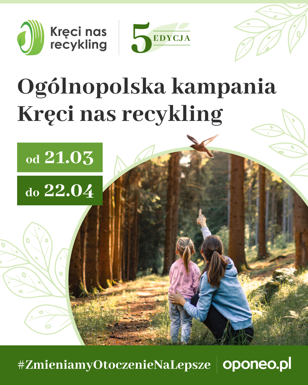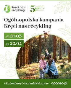 Wiosną 2026 roku wystartowała piąta edycja proekologicznej kampanii Kręci nas recykling. To ogólnopolska kampania Oponeo, realizowana przy wsparciu ekologa Dominika Dobrowolskiego . Organizowana jest w okresie od 21 marca (pierwszy dzień wiosny) do 22 kwietnia (Dzień Ziemi). W tym roku odbędzie się jej 5. edycja.