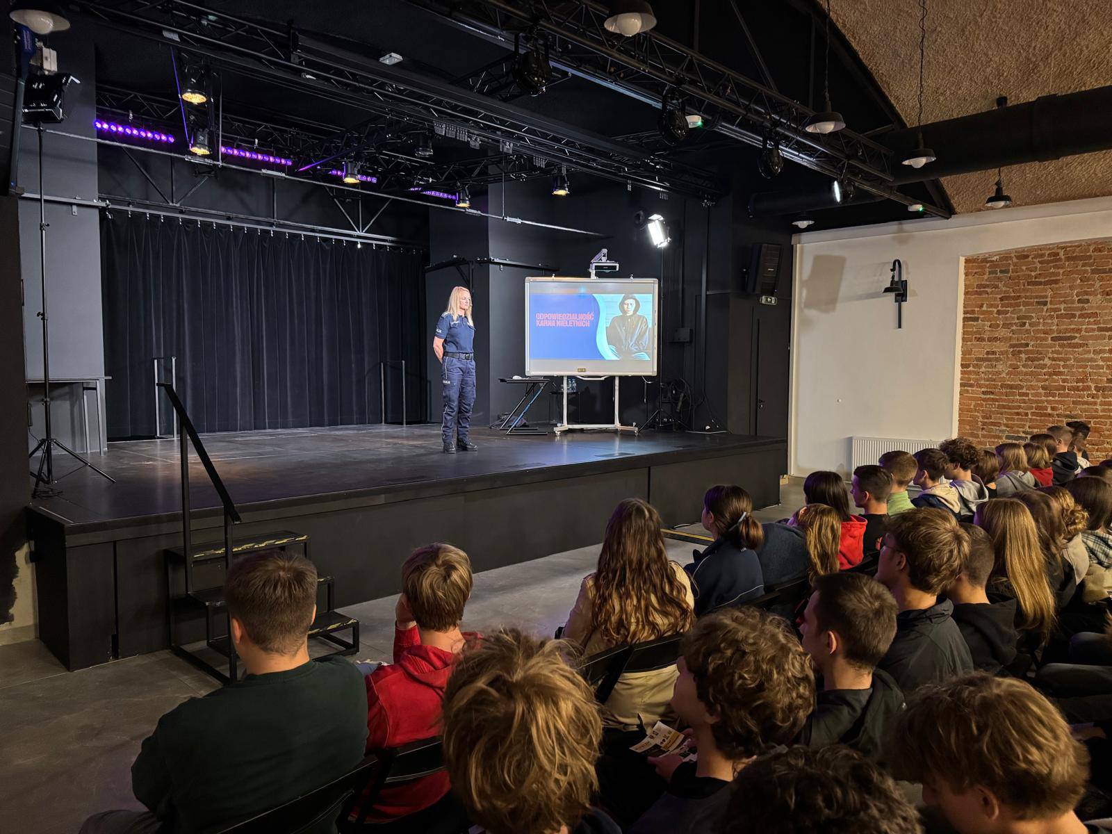 24 września 2025 r. uczniowie klasy 3a uczestniczyli w warsztatach zorganizowanych w ramach powiatowego projektu „RAZEM BEZPIECZNI” w Powiatowym Centrum Kultury Fabryczka w Wołominie.