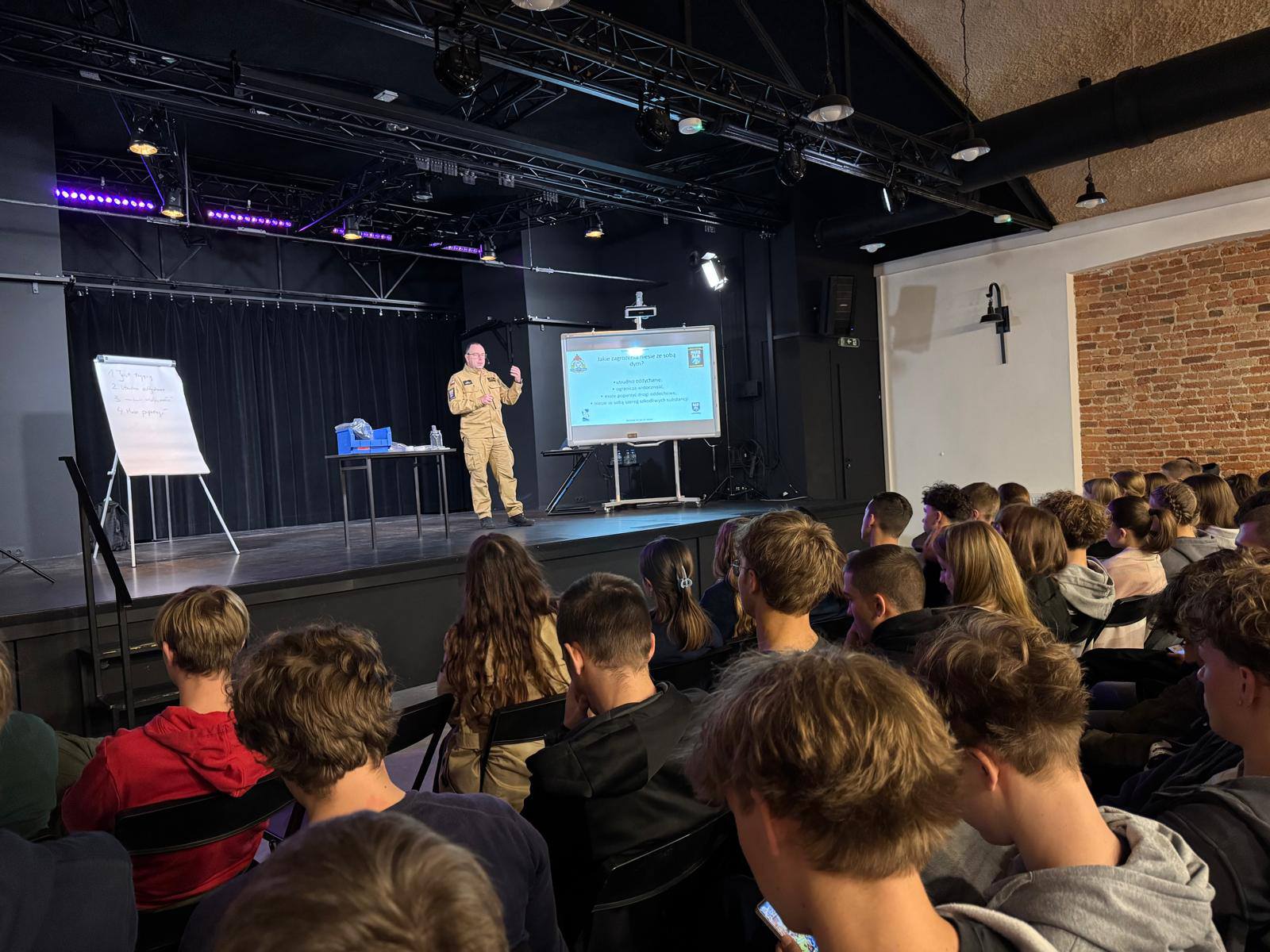 Młodzież brała udział w zajęciach z samoobrony, wysłuchała prelekcji na temat cyberprzestępczości, odpowiedzialności karnej nieletnich i pełnoletnich, bezpieczeństwa w bankowości elektronicznej oraz zasad prawidłowego zachowania w ruchu drogowym. Uczniowie poznali także zagrożenia związane z zażywaniem substancji psychoaktywnych, zasady postępowania w sytuacjach kryzysowych oraz mieli okazję uczestniczyć w pokazach pierwszej pomocy i obsługi AED. Dużym zainteresowaniem cieszył się również pokaz pracy psa do detekcji zapachowej.